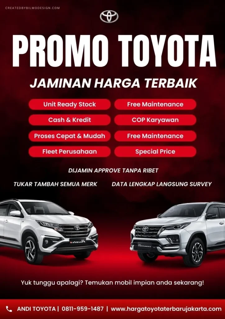 Yang paling dinantikan dan ditunggu-tunggu adalah promo, diskon dan program menarik dari kami dan perusahaan TOYOTA, yang tentunya akan sangat menguntungkan anda.